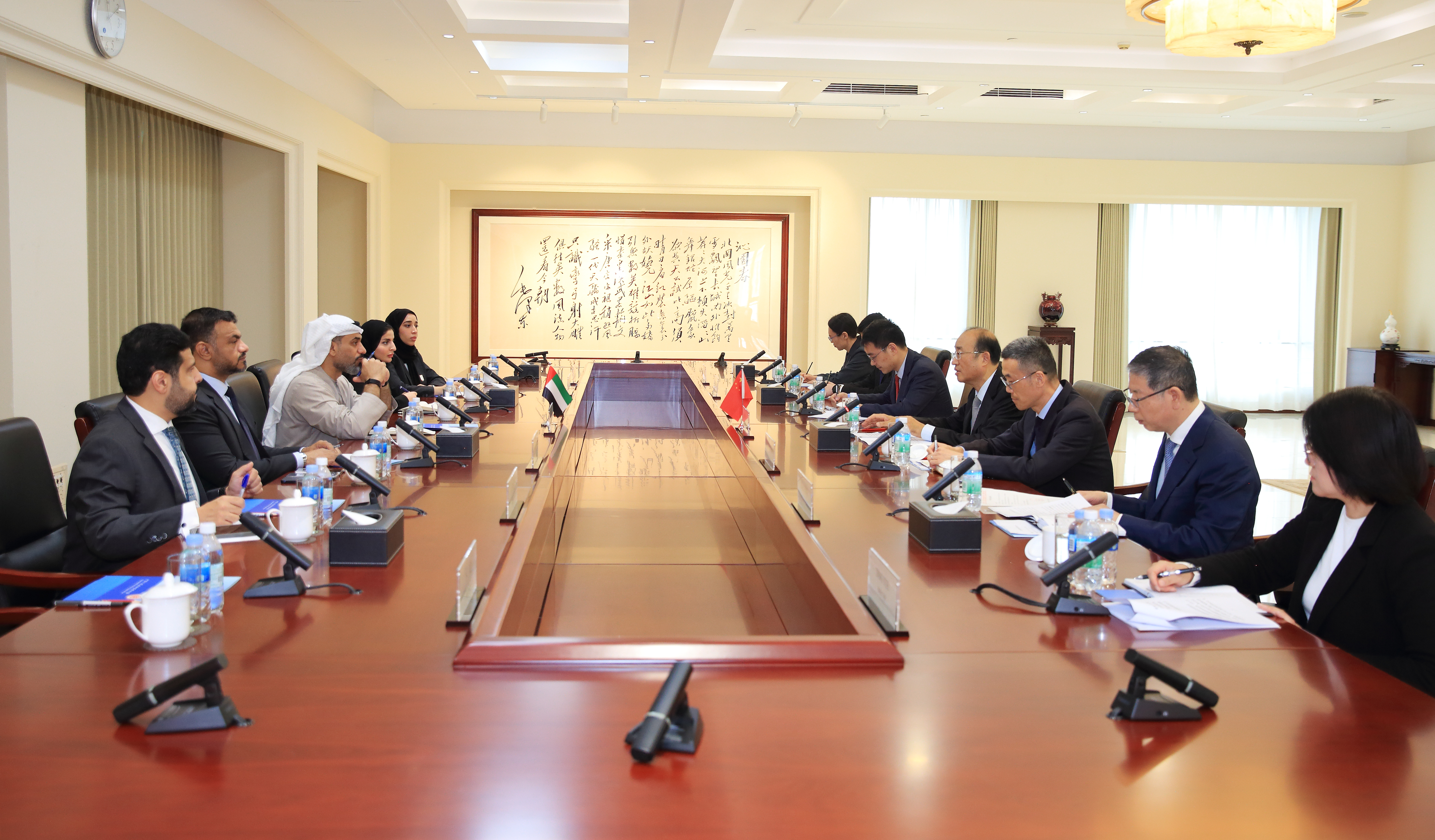 Mr. Hou Kai, Auditor General of the National Audit Office of China, met with Mr Humaid Abushibs, Chairman of the UAE Accountability Authority, in Beijing on 15 October 2025. The two heads of SAIs signed the Memorandum of Understanding on Promoting Cooperation in the Public-Sector Audit between the two SAIs aiming at strengthening bilateral ties.