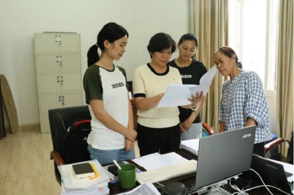 趙雪艷(左二)與同事們討論交流審計項目