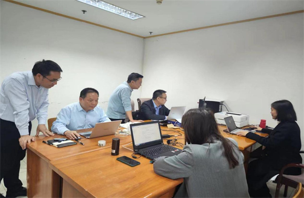 財政審計處審計人員在審計項目現場交流討論