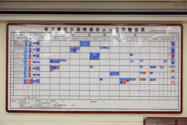 走進哈爾濱特派辦的大會議室,墻上懸掛的審計項目“作戰圖”很顯眼,每位審計人員的名字被制作成磁條,以便辦領導班子在謀劃項目和統籌人力時,快速決策。
