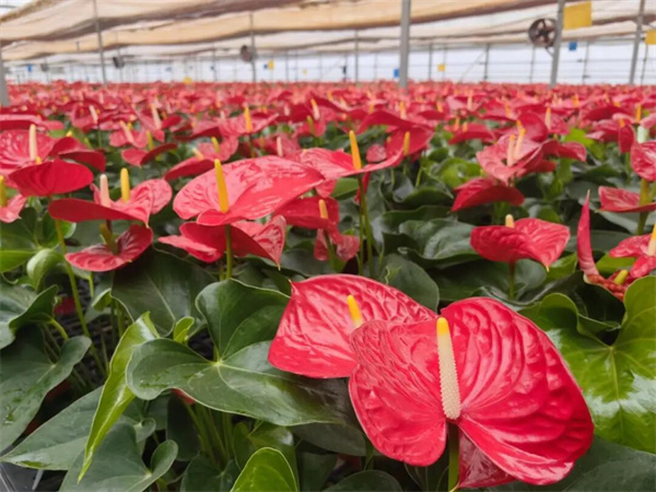 花卉種植基地內長勢喜人的紅掌
