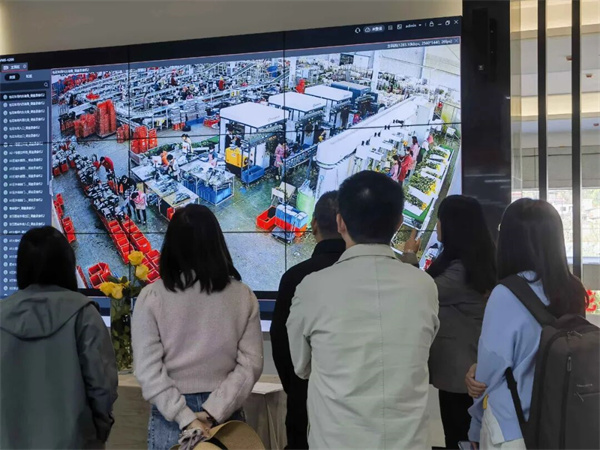 審計人員通過大屏查看花卉企業分揀包裝車間實時生產情況