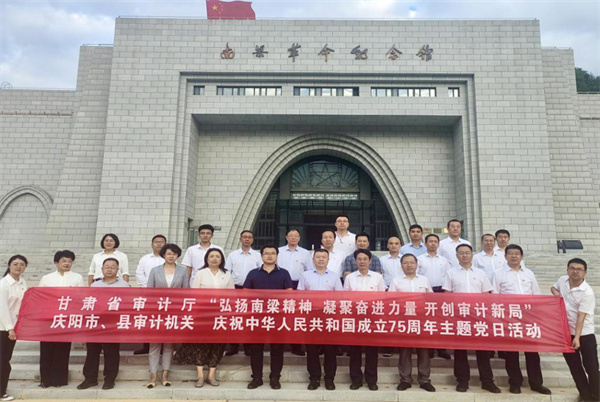 甘肅省審計廳與慶陽市、縣審計機關黨支部在南梁聯合開展“弘揚南梁精神 凝聚奮進力量 開創審計新局”主題黨日活動。在南梁革命烈士紀念碑前,全體黨員干部敬獻花籃、重溫入黨誓詞,隨后集體參觀荔園堡蘇維埃政府成立舊址和南梁革命紀念館,用心體會“面向群眾、堅守信念、顧全大局、求實開拓”的南梁精神,進一步匯聚攻堅克難、砥礪奮進的正能量。