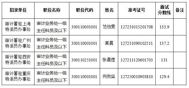 根據公務員考試錄用工作的有關規定,因部分考生自愿放棄面試資格,按照筆試成績從高到低的順序,遞補以下考生為面試人選: